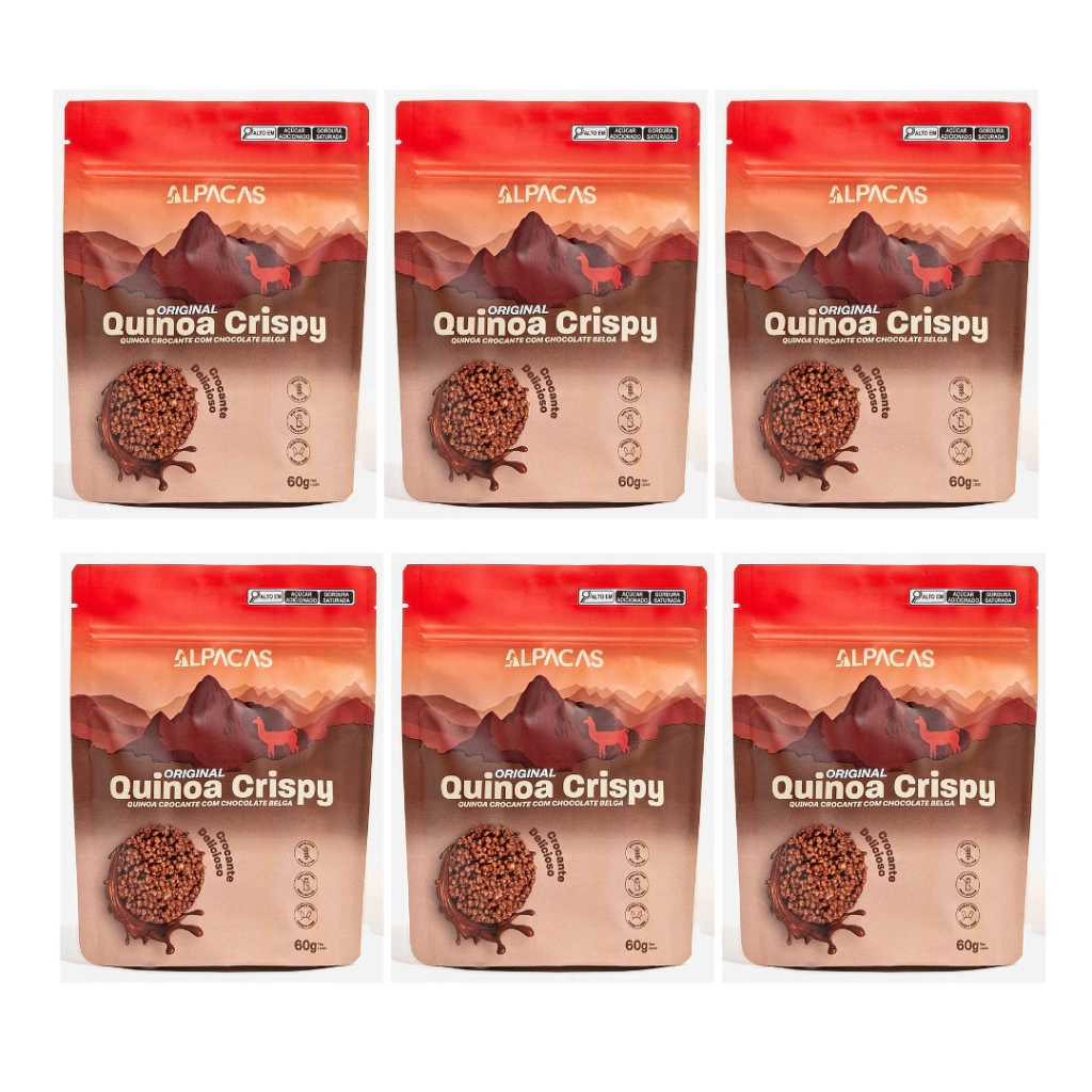 Crispies de quinoa com chocolate belga.INGREDIENTES: Na imagem do produtoESTE PRODUTO CONTÉM: 6 Unidades Crispy Original Belga, cada unidade contém 60 gramas.