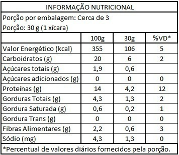 Crispies 100% de quinoa, fonte de aminoácidos essenciais, fibras, vitaminas e minerais importantes para o organismo.